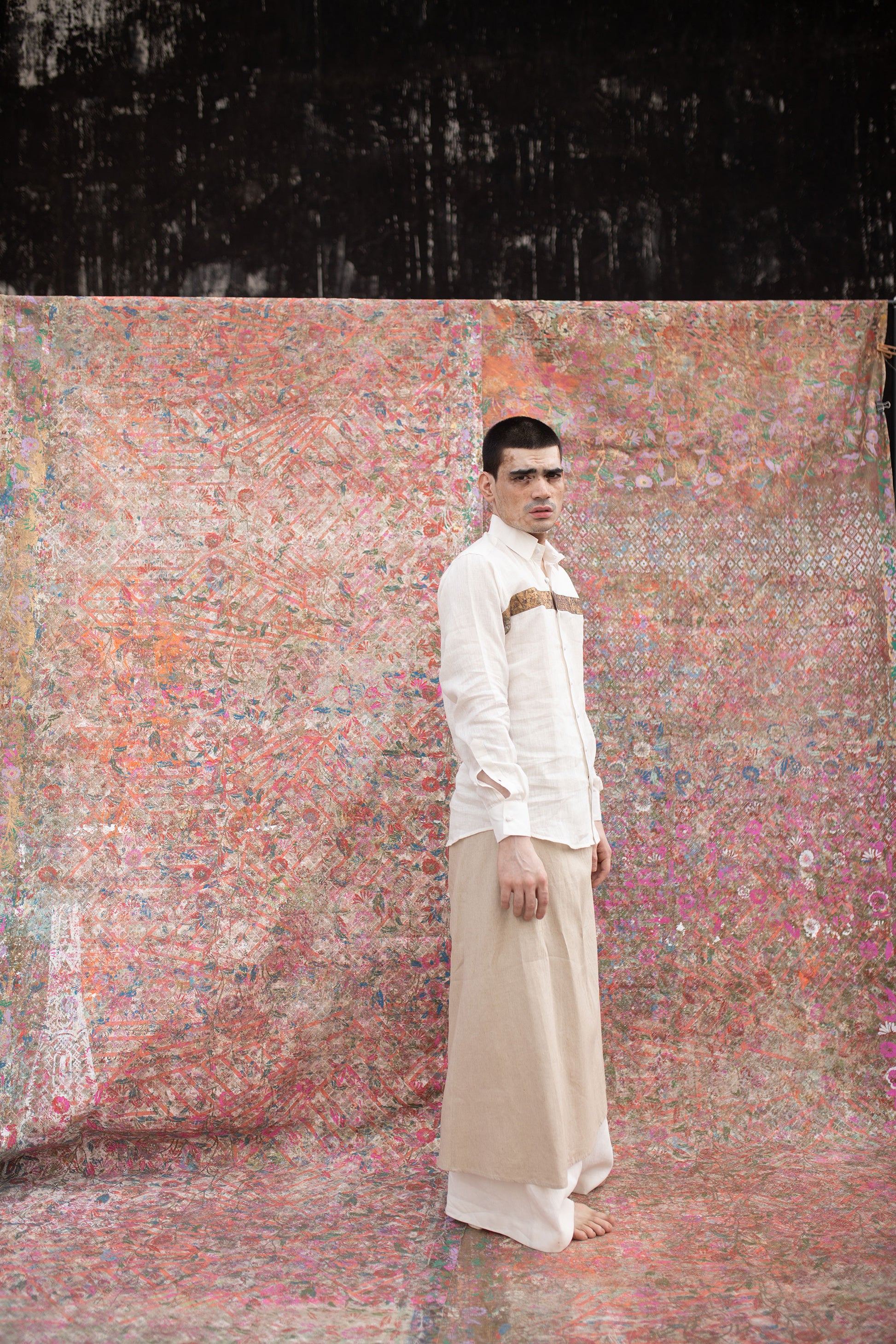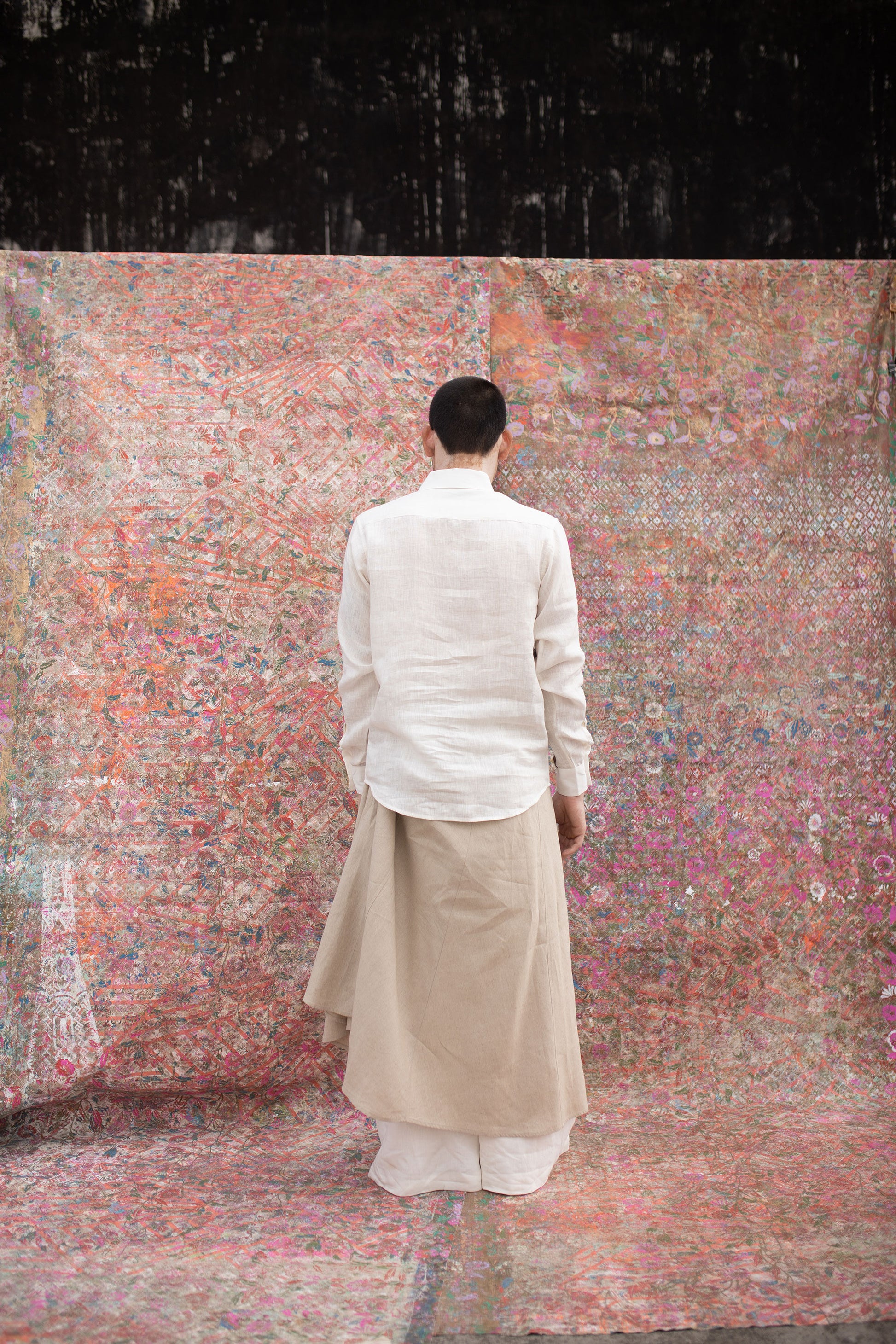 The Patina Collection is created using soft handwoven Bhagalpuri linen. These textiles are highlighted with different geometrical textures and patterns in different colors using recycled hand block print using hand carved traditional wooden blocks from Sanganer.