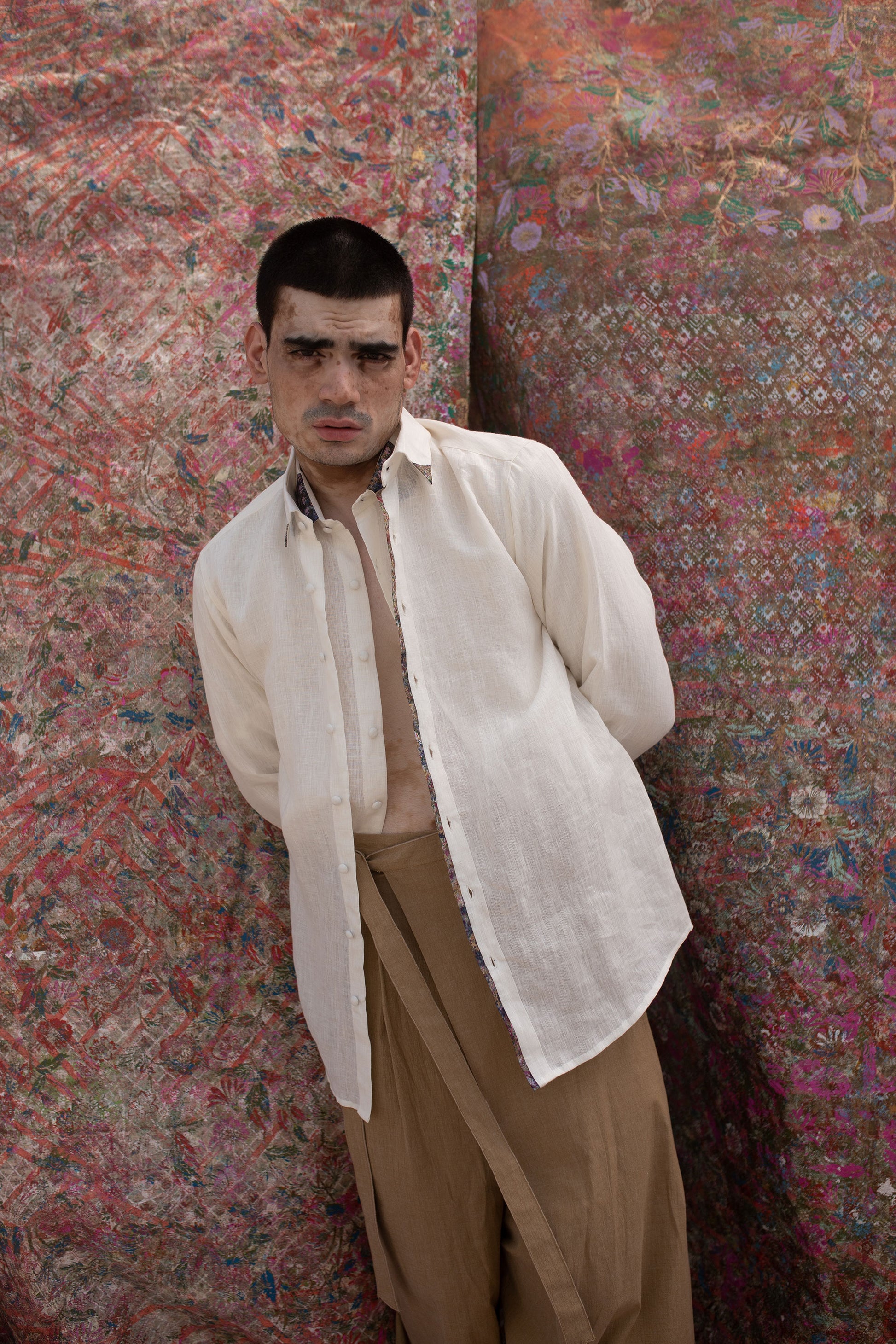 The Patina Collection is created using soft handwoven Bhagalpuri linen. These textiles are highlighted with different geometrical textures and patterns in different colors using recycled hand block print using hand carved traditional wooden blocks from Sanganer.
