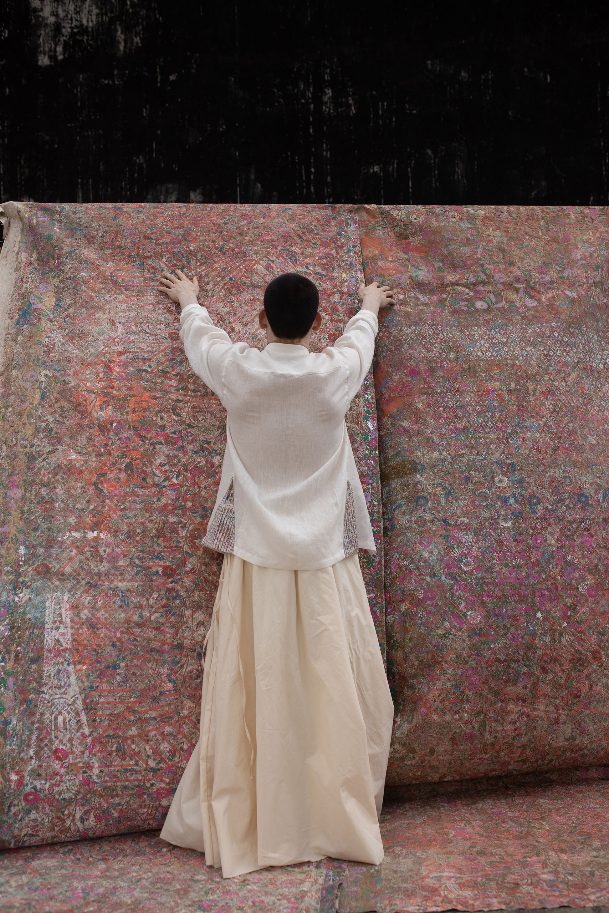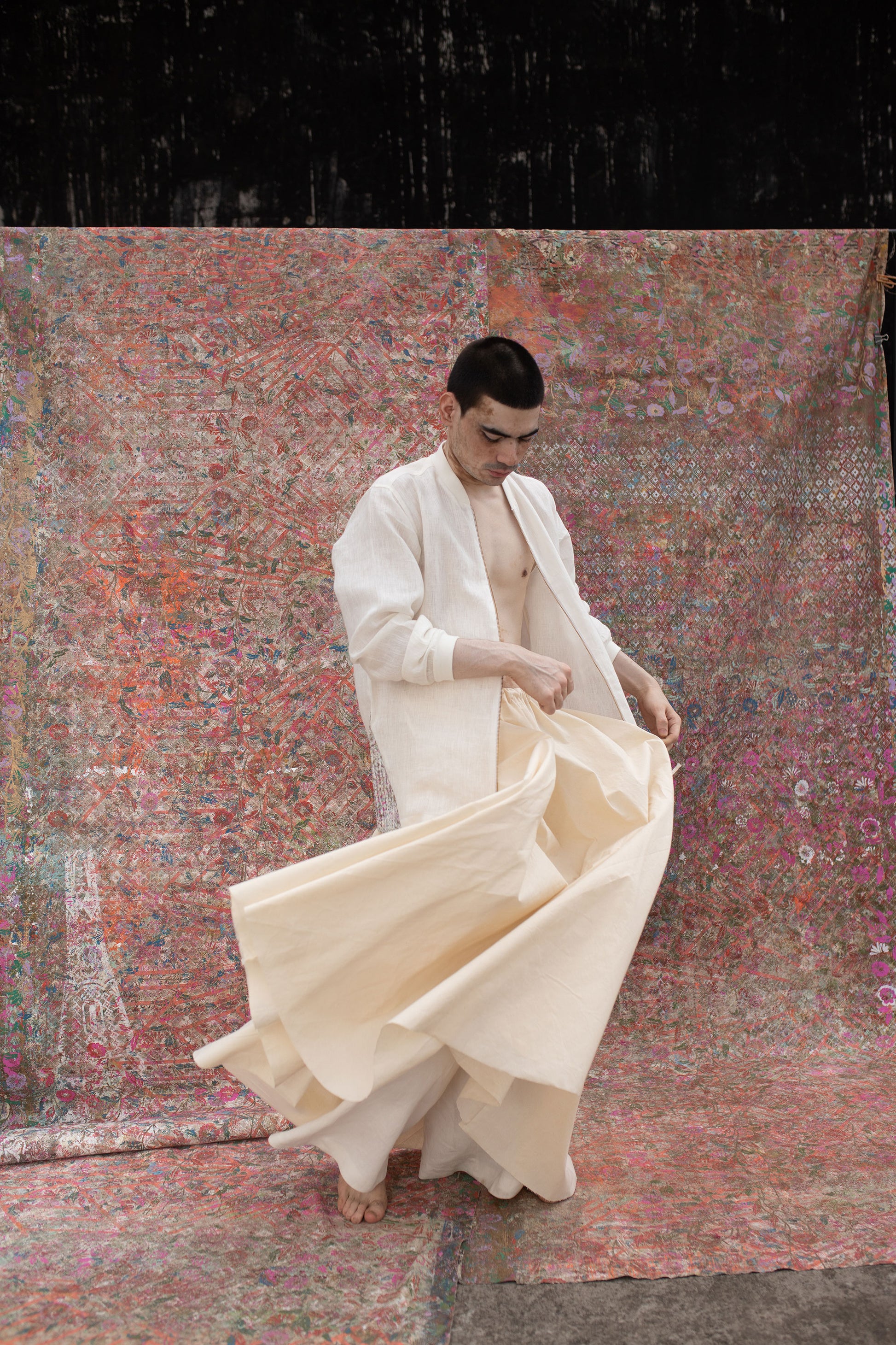 The Patina Collection is created using soft handwoven Bhagalpuri linen. These textiles are highlighted with different geometrical textures and patterns in different colors using recycled hand block print using hand carved traditional wooden blocks from Sanganer. This shirt has a Patina block printed one-of-a-kind fabric side godet detail. Kindly note that this product is a regular fit. Hand Wash/Dry Clean recommended.