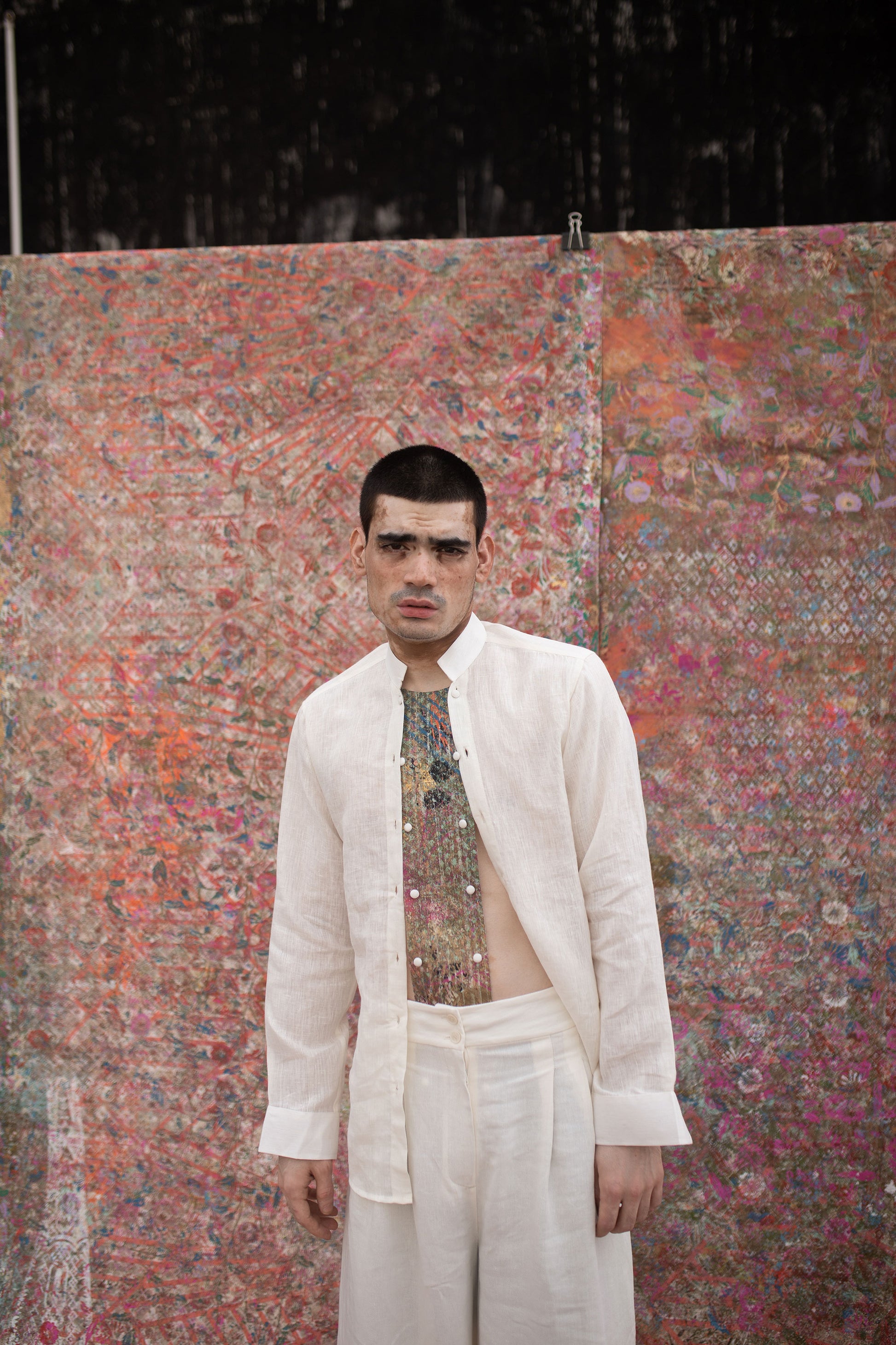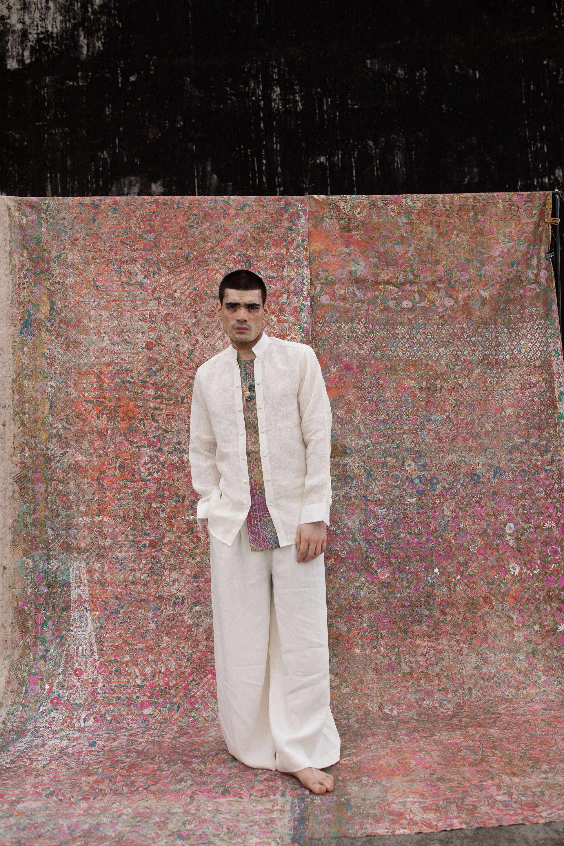 The Patina Collection is created using soft handwoven Bhagalpuri linen. These textiles are highlighted with different geometrical textures and patterns in different colors using recycled hand block print using hand carved traditional wooden blocks from Sanganer.