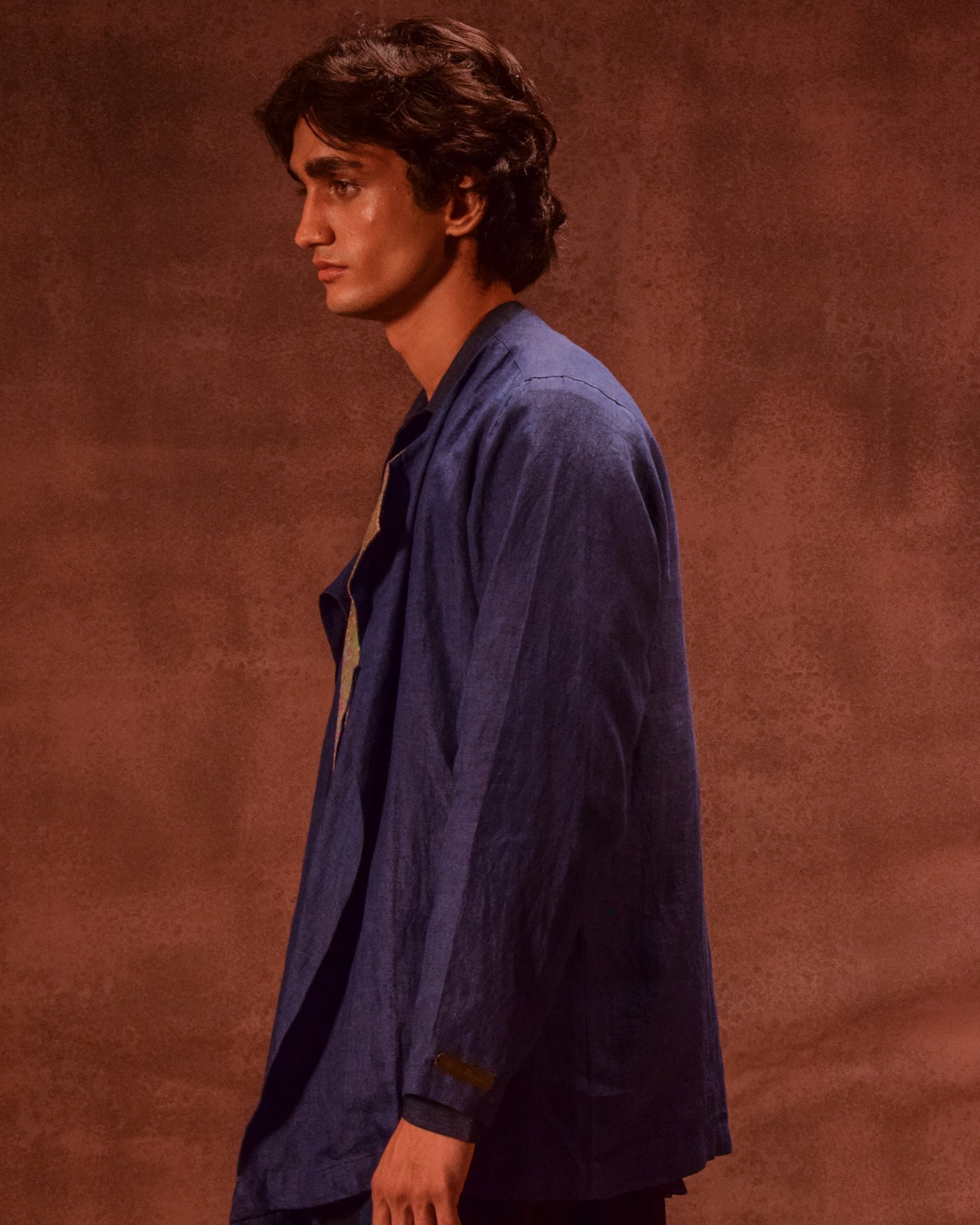 The Patina Collection is created using soft handwoven Bhagalpuri linen. These textiles are highlighted with different geometrical textures and patterns in different colors using recycled hand block print using hand carved traditional wooden blocks from Sanganer.
