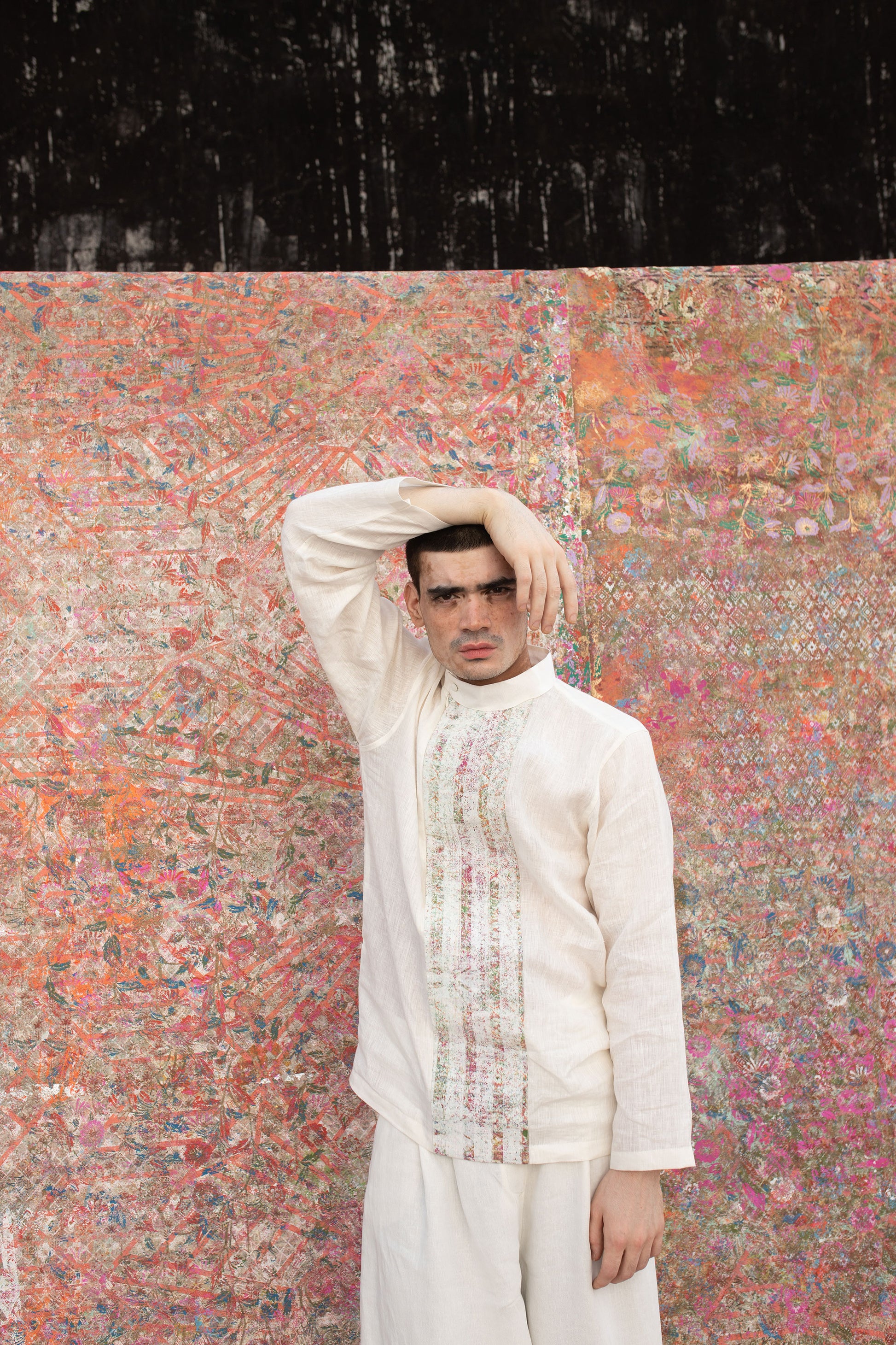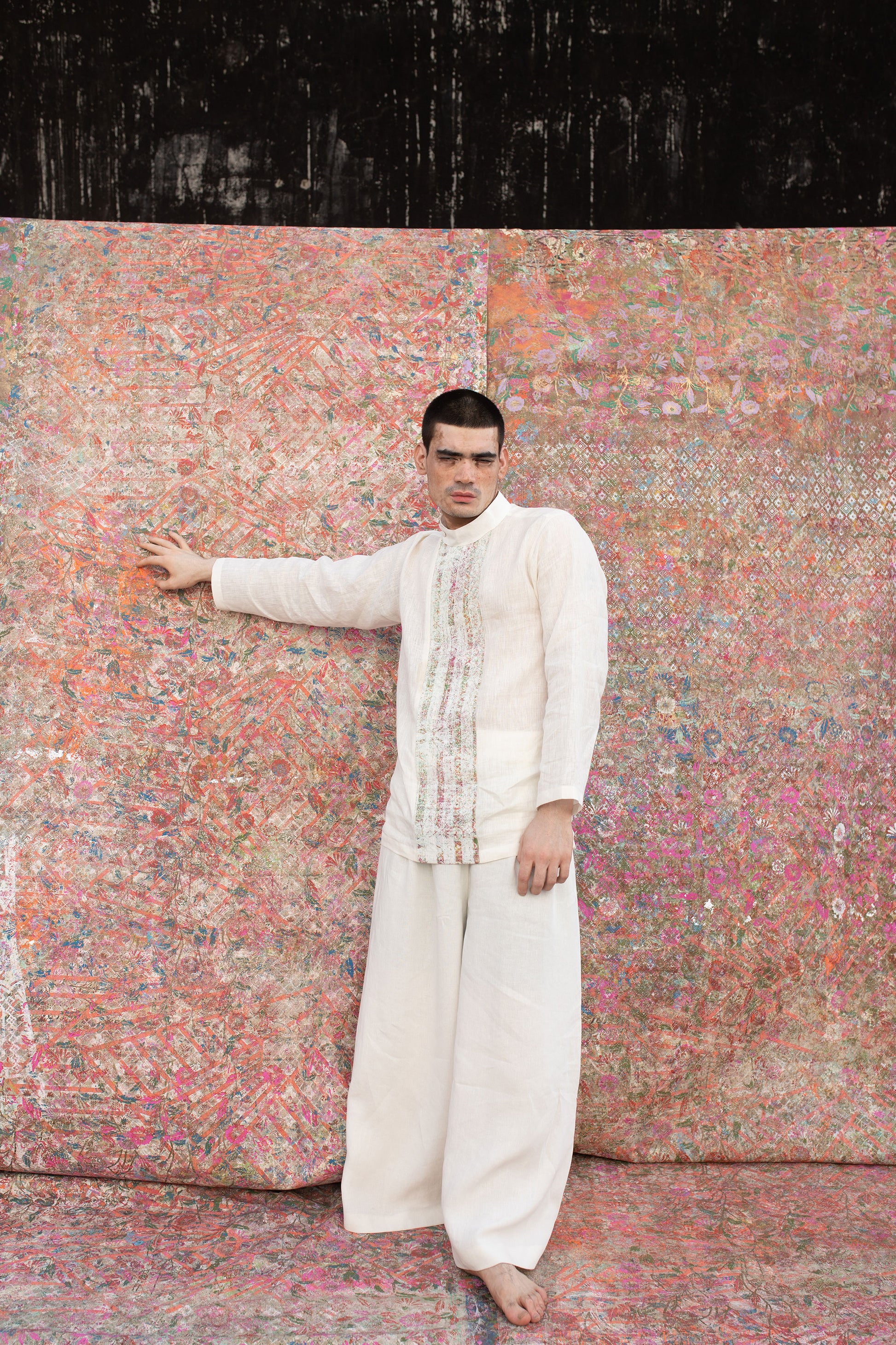 The Patina Collection is created using soft handwoven Bhagalpuri linen. These textiles are highlighted with different geometrical textures and patterns in different colors using recycled hand block print using hand carved traditional wooden blocks from Sanganer.