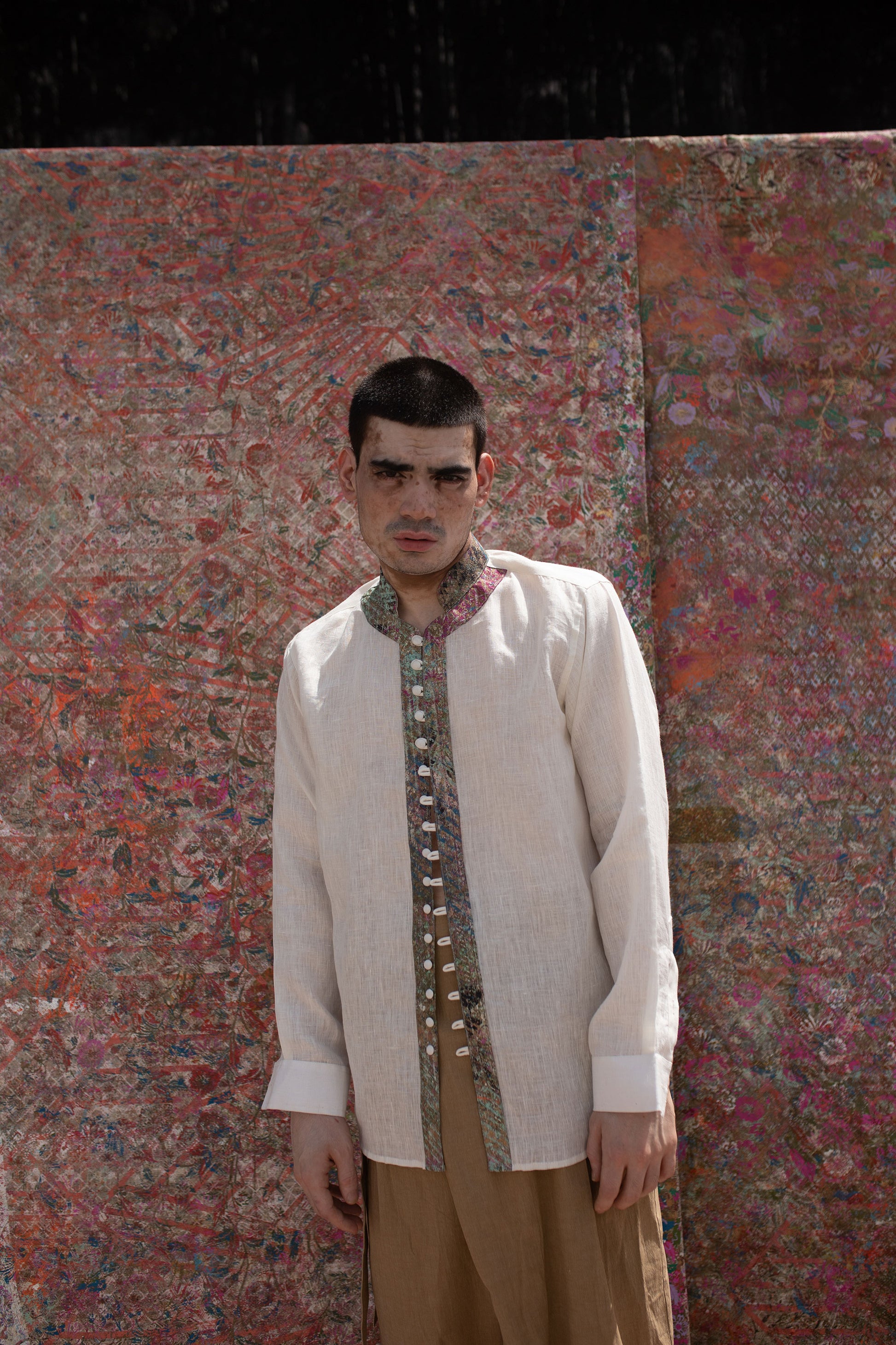 The Patina Collection is created using soft handwoven Bhagalpuri linen. These textiles are highlighted with different geometrical textures and patterns in different colors using recycled hand block print using hand carved traditional wooden blocks from Sanganer.